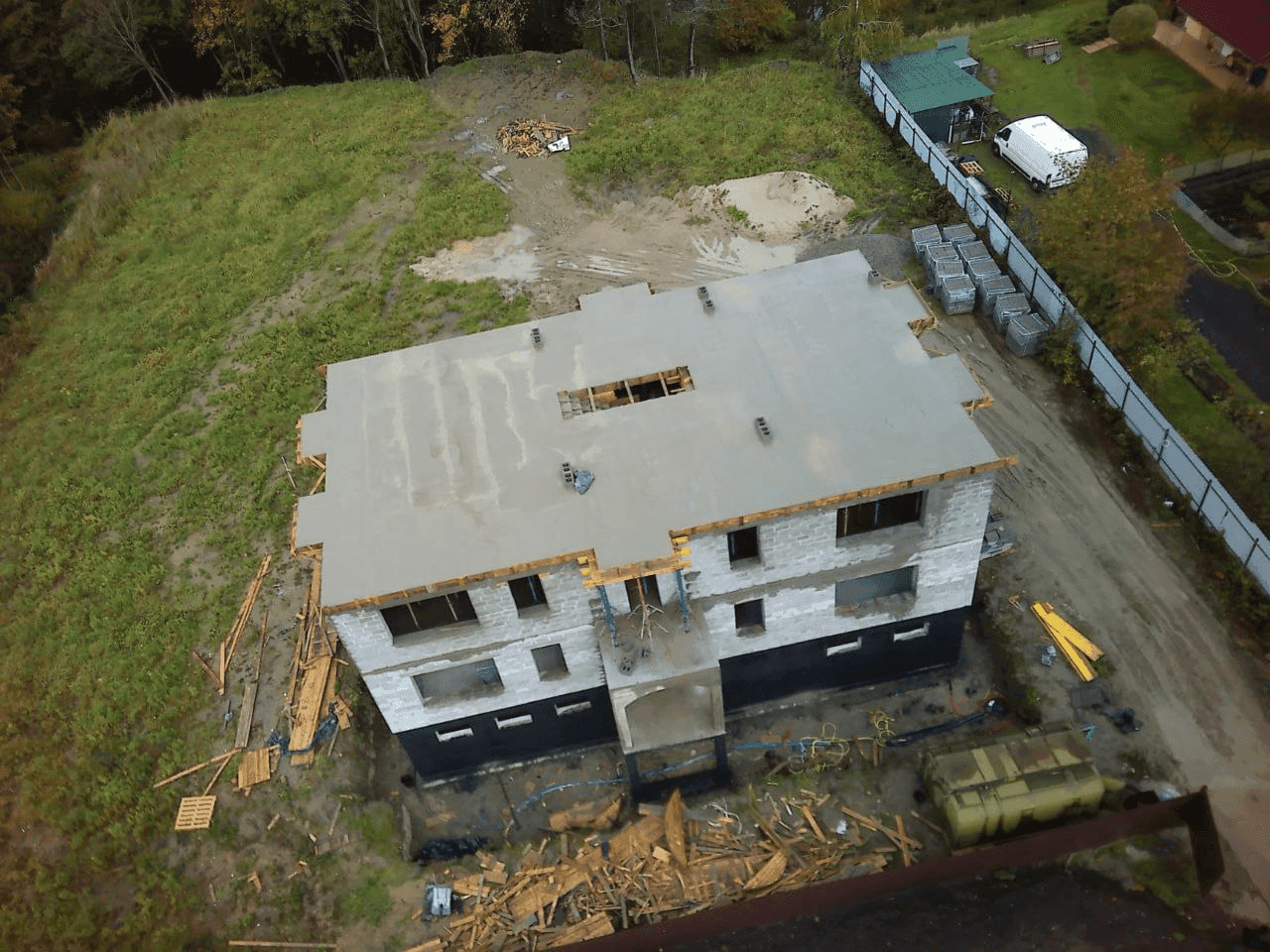 Фундамент - цокольный монолитный. Цоколь защищает строение от намокания и препятствует проникновению воды с поверхности земли внутрь жилых помещений. Несущие стены – керамзитобетон. Долговечный, прочный, легкий, жаростойкий и экологичный материал. Монолитные плиты перекрытия – повышенные характеристики прочности, хорошая жесткость, за счет цельнолитой конструкции (без зон стыковки) все усилия распределяются равномерно на коробку здания и фундамент. Крыша - керамическая двухскатная кровельная система с двумя кукушками. В строительном деле кукушкой называют небольшое прямоугольное помещение с окном или остекленной дверью, врезанное в конструкцию ската над свесом.